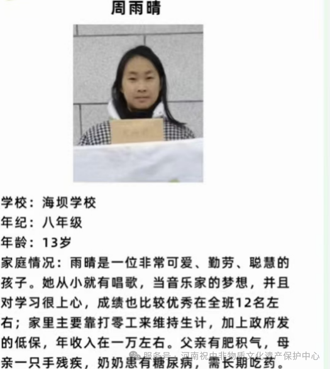 本机构正式参加四川音乐学院 “多帮一” 助学计划 近日,河南祝由非物质文化遗产保护中心与四川音乐学院达成合作意向,正式参与该校“川音多背一公斤的公益”多帮一助学计划,此计划旨是“川音多背一公斤”志愿者团队2017年开启,定期定向资助一些有困难的孩子,每期参与活动的志愿者有一百余人,希望能够通过活动帮助这些家庭困难的孩子在一定程度上减轻经济负担,让他们能专心地投入到学业中去,本机构计划为经济困难学生提供学业支持的同时,推动祝由非物质文化遗产的活态传承与创新实践,以祝由非遗文化传承机构社会责任和担当,为山区困境学生搭建成长桥梁,实现中华优秀传统文化保护与公益助学事业的双向赋能。中心主任王振轩,亲自参与四川音乐学院的“川音多背一公斤的公益”多帮一助学计划,已连续多期支持该公益活动。自今年起,我们以 “河南祝由非遗文化遗产保护中心机构” 为单位,正式接力参与此公益行动,延续助学善愿,让更多机构成员共同行善积德。川音多背一公斤助学计划活动1、以10人(志愿者学生和社会爱心人士)为一组共同资助1名贫困山区学生,形成帮助链,定期定向资助指定山区贫困学生。2、志愿者每月资助大于或等于二十元来帮助自己指定的某一位资助对象,每个月花费一杯奶茶钱就可以帮助一位小朋友!3、活动周期为一学期,一旦选择加入该活动,志愿者需完成一学期的资助。(本学期一共三个月,十月、十一月、十二月)作为承载中华民族数千年智慧的文化瑰宝,黄帝祝由术源自《黄帝内经・素问・移精变气论》,以“调神安神、激发自愈” 为核心,通过符咒仪式、祝祷语言等形式调节人的精神气机,堪称中国最早的心理疗愈术。近年来,在非遗传承人李雄,和王振轩等专业老师力量的深耕下,这门古老技艺摆脱 “巫术” 误解,以文化传承与心理疗愈相结合的新时代价值焕发生机,本机构自成立以来,始终坚守 “保护传承、活化利用、责任担当” 三大使命,此次参与助学计划,正是将非遗文化中 “人文关怀” 内核与公益精神深度融合的创新实践。此次合作中,本机构将发挥三大作用:一是组建专项爱心团队,动员非遗传承人、文化工作者及社会爱心人士加入资助小组,按照计划要求完成一学期定向资助,保障资金及时足额到位;二是结合祝由术 “心理疗愈” 特色,为有心理问题的学生,提供祝由心理调理、情绪安抚引导等方式,帮助孩子们缓解学业压力与生活焦虑,助力身心健康成长;三是搭建文化交流平台,组织非遗传承人走进山区学校开展公益讲座,以传统养生智慧等生动内容,让孩子们感受中华优秀传统文化的魅力,培育文化自信。此次活动本机构了解周雨晴的家庭情况,王振轩主任带头进行捐助,希望能够帮助这个孩子在一定程度上减轻经济负担。本机构王振轩主任表示,祝由的非遗传承人不仅在于技艺传承,更在于其蕴含的文化精神与社会价值与当代转化,上级单位,文化和旅游局明确提出,鼓励社会组织参与非遗传承与公益帮扶,形成全社会共同支持的良好氛围,此次加入 “川音多背一公斤” 助学计划,既是响应国家号召的具体行动,也是将祝由术 “以人为本” 的文化内核转化为实际社会价值的有益探索。未来,本机构还将探索 “非遗教育 + 乡村教育”,开发适合山区学生的非遗教育课程,让文化传承与教育帮扶相互促进、协同发展。编辑 | 周仁礼初审 | 凌云子复审 | 王振轩法务 | 铭和法律律师团队