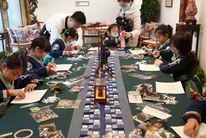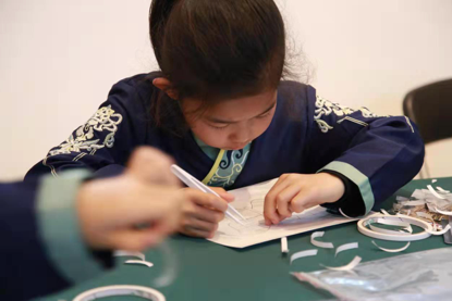 活动以剧本沉浸式,寻找丢失的七彩羽毛为背景展开。在袅袅青烟、悠悠古琴声中,孩子们身穿汉代服饰,彬彬有礼、诵读古词。通过相互帮助、协力合作、寻找线索、勇闯关卡,最终完成任务。在npc(老师)的带领下,孩子们通过非遗羽毛画的技艺将七彩羽毛制作成精美的羽毛画作。