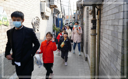 “世界非遗看中国,中国非遗看北京,北京非遗看天桥”。在参观完天桥印象博物馆后,孩子们跟随老师在游历老北京胡同儿,了解当地的民风及胡同文化后,最终来到了东方文明非遗博物馆,开启了一段时空穿行之旅。